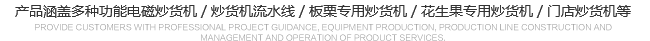 目前公司產(chǎn)品涵蓋多種功能電磁炒貨機(jī),炒貨機(jī)流水線,板栗專用炒貨機(jī),花生果專用炒貨機(jī),門店炒貨機(jī)等。 規(guī)格品種齊全、產(chǎn)品質(zhì)量穩(wěn)定可靠,產(chǎn)品遠(yuǎn)銷國內(nèi)外。